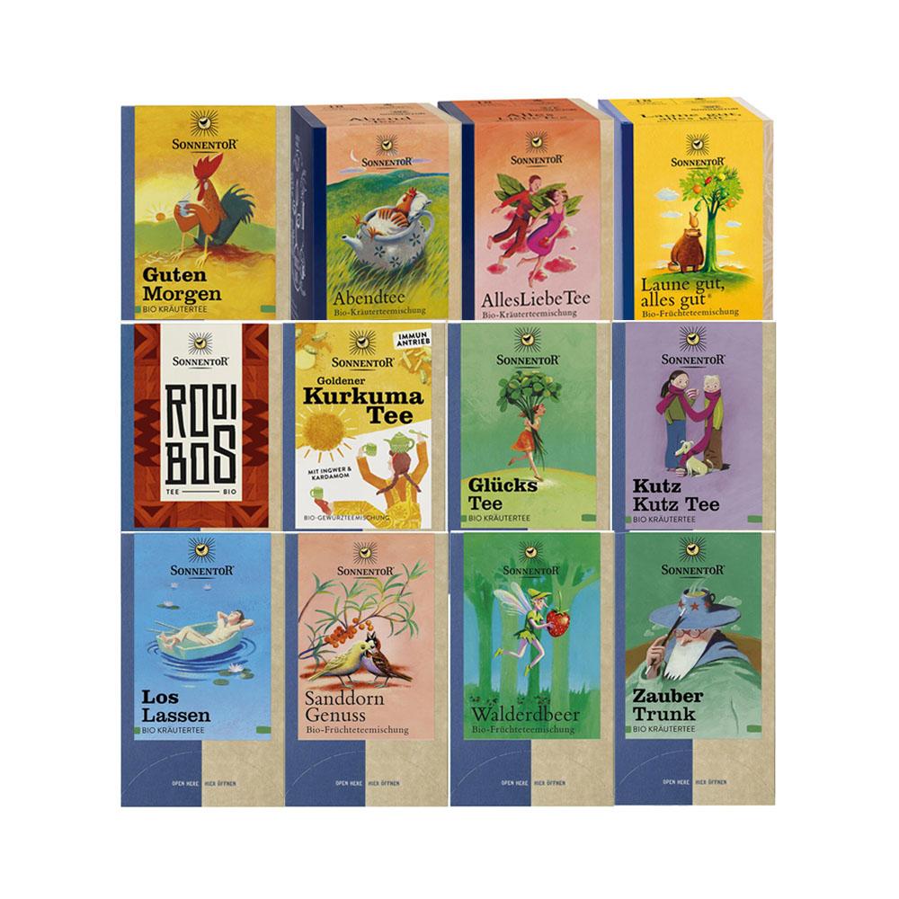 | Sorte | Glückstee á 1,5g 18 Btl, Alles Liebe Kräutertee á 1,5g 18 Btl, Goldener Kurkuma Tee à 2g 18 Btl, Rooibos natur a 1,08g 18 Btl, Abendtee á 1,5g 18 Btl, GutenMorgenTee á 1,5g 18 Btl, Kutz Kutz Tee á 1,5g 18 Btl, Laune gut, alles gut á 2,5g 18 Btl, Loslassen á 1,5g 18 Btl, Sanddorn Genuss á 3g 18 Btl, Walderdbeer Tee á 3g 18 Btl, Zaubertrunk Kräutertee 18 Btl |